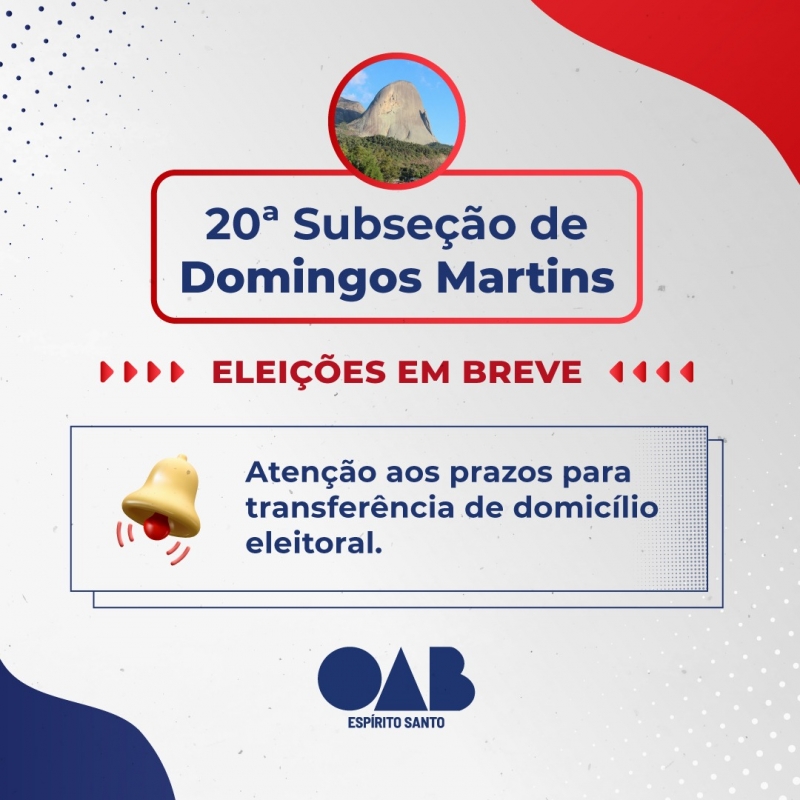 OAB-ES prepara eleição para a nova Subseção de Domingos Martins. Fique atento ao prazo para transferência de domicílio eleitoral