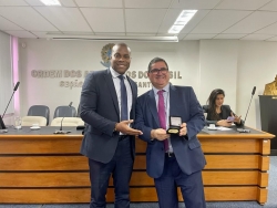 Também foi feita uma homenagem especial ao juiz titular do Pleno do Tribunal Regional Eleitoral (TRE-ES) pela Classe dos Juristas, Lauro Coimbra, que recebeu das mãos do secretário-geral Alberto Nemer Neto uma medalha.