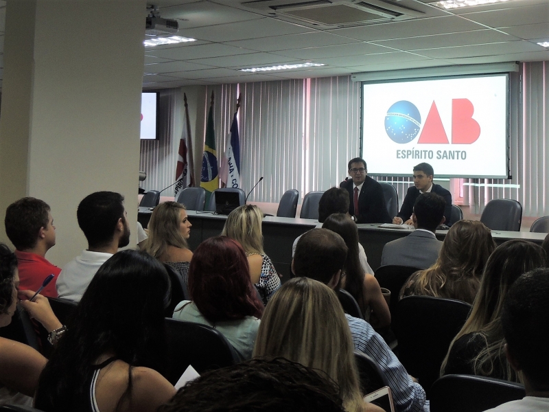 A Ordem dos Advogados do Brasil - Seção Espírito Santo (OAB-ES), recebeu 100 alunos do curso de Direito das faculdades Multivix e Faesa. Eles fizeram uma visita técnica à sede, na tarde desta quinta-feira (5), com os futuros advogados e advogadas sendo recepcionados pelo secretário geral da OAB-ES, Ricardo Brum. A visita foi organizada pelas Comissões de Estágio, de Ensino Jurídico e Comissão Estadual da Advocacia em Início de Carreira (CEAIC).