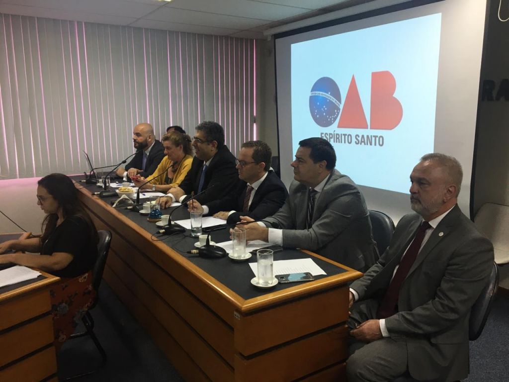 Participaram da audiência a vice-presidente da OAB-ES, Anabela Galvão; o secretário geral, Marcus Felipe Botelho Pereira; o secretário geral-adjunto, Rodrigo Carlos de Souza; o tesoureiro Ricardo Ferreira Pinto Holzmeister; o conselheiro Lauro Coimbra e o conselheiro e presidente da Comissão Especial de Direito Processual e Organização Judiciária, Victor Massante.