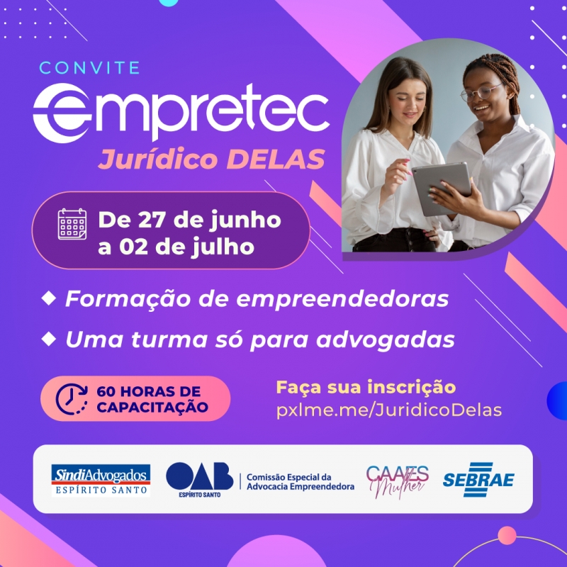 A Ordem dos Advogados do Brasil, Seccional Espírito Santo (OAB-ES), por meio da Comissão Especial da Advocacia Empreendedora, firmou um convênio com o Sebrae-ES, com o apoio do Sindicato dos Advogados do Espírito Santo (Sindiadvogados) e da CAAES Mulher, e estará oferecendo o “Empretec Jurídico”, voltado somente para advogados e advogadas inscritos na Ordem.