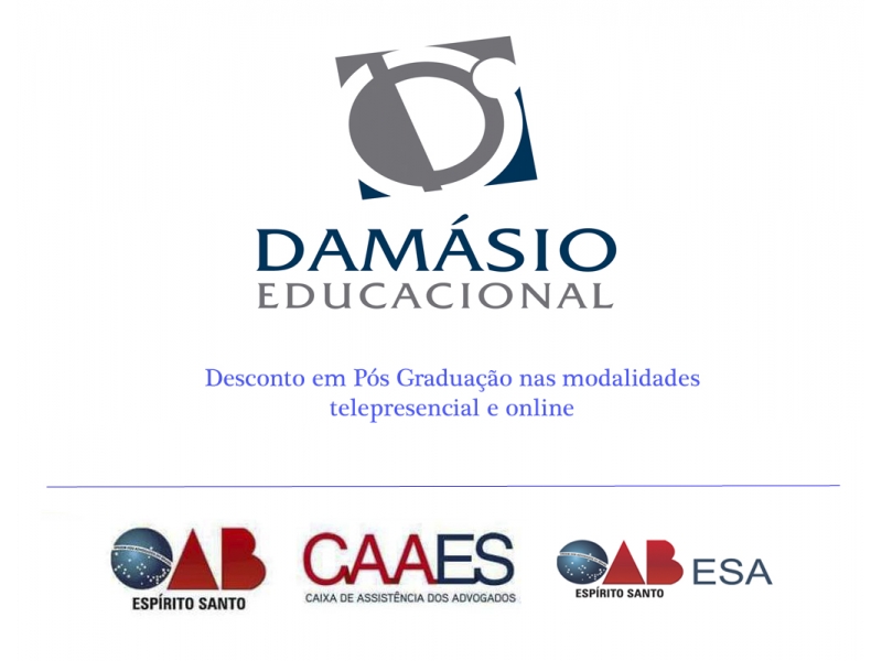 Acesse a página de convênios no site da OAB-ES e da CAAES e veja todas as parcerias que garantem descontos aos advogados e advogadas. Acesse também a página da Instituição e saiba mais http://www.damasio.com.br/pos.