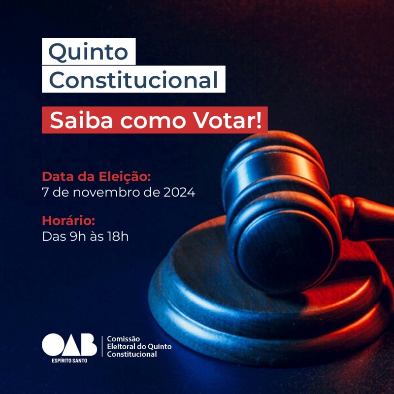 A eleição de consulta direta à classe será das 9h às 18h. Os advogados e as advogadas poderão votar acessando a plataforma online, disponível no endereço www.oabesquinto.webvoto.com.br.