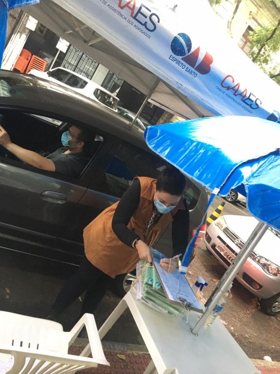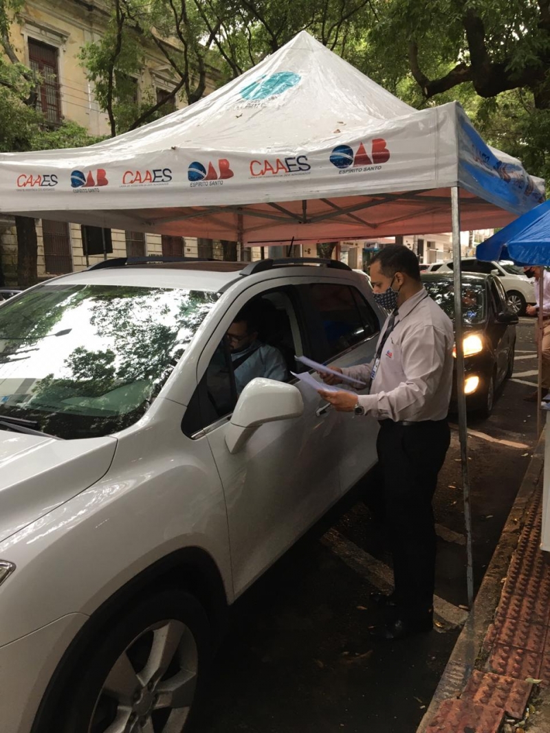 E para garantir a rapidez no processo, uma equipe da OAB-ES e da CAAES está prestando atendimento no local dando todo suporte técnico e fazendo abordagem a advogados e advogadas. E para maior comodidade e agilidade, eles não precisam sair do veículo.