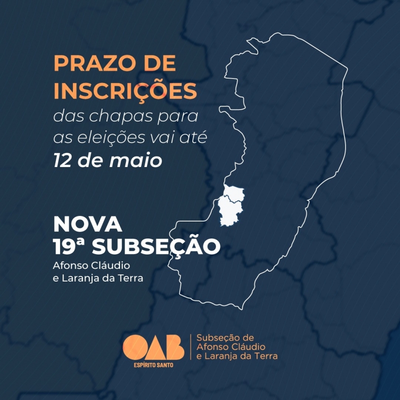 Prazo de inscrição de chapas para eleições da 19ª Subseção de Afonso Claudio vai até dia 12 de maio