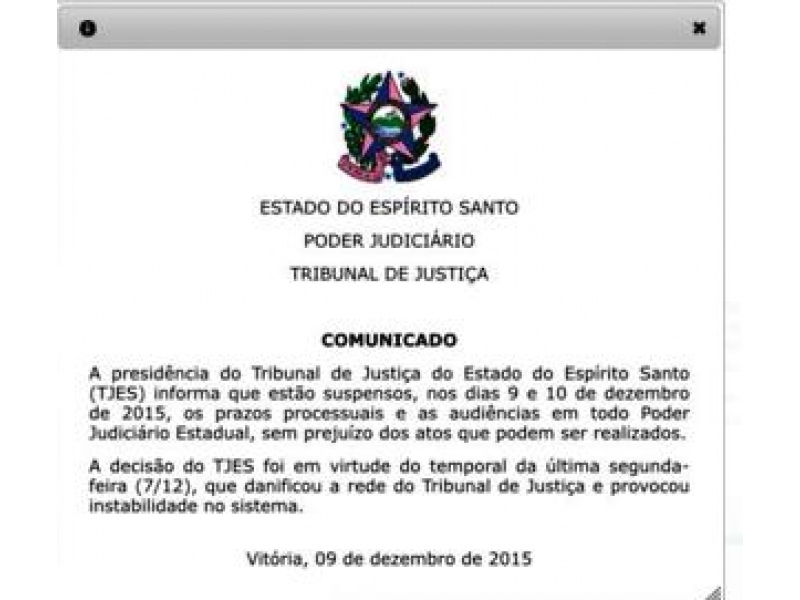A decisão do TJES foi em virtude do temporal da última segunda-feira (07), que danificou a rede do Tribunal de Justiça e provocou instabilidade no sistema.