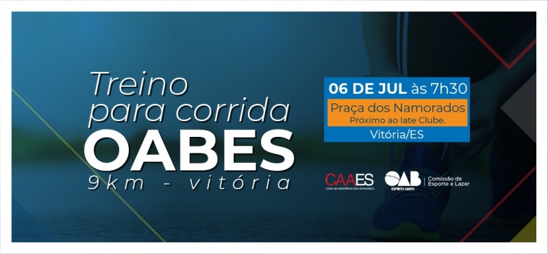 No próximo sábado (06), às 7h30, a Comissão de Esporte e Lazer da Ordem irá realizar mais um treino para a corrida OAB-ES. A concentração será na Praça dos Namorados, próximo ao Iate Clube. Será um momento para que os interessados possam se preparar para o grande dia dedicado à saúde e bem-estar, que será a Corrida em 04 de agosto. (inscreva-se)