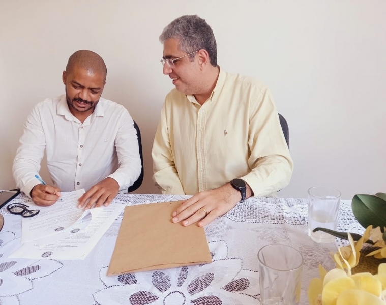 O presidente da OAB-ES, José Carlos Rizk Filho e o presidente da 7ª Subseção, Fagner da Rocha Rosa, assinaram o primeiro termo aditivo para execução de obras e reforma da sede no município de Alegre na manhã desta sexta-feira (1º/03).