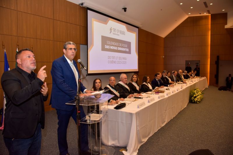 O presidente da OAB-ES, José Carlos Rizk Filho, participou, nesta quinta-feira (19/01), da Sessão Solene de Posse das Novas Dirigentes do TRT-ES para o biênio 2023-2025, onde foram empossadas para a presidência, a desembargadora Daniele Corrêa Santa Catarina, e para a vice-presidência, a desembargadora Alzenir Bollesi De Plá Loeffer. Várias autoridades estiveram presentes na solenidade.
