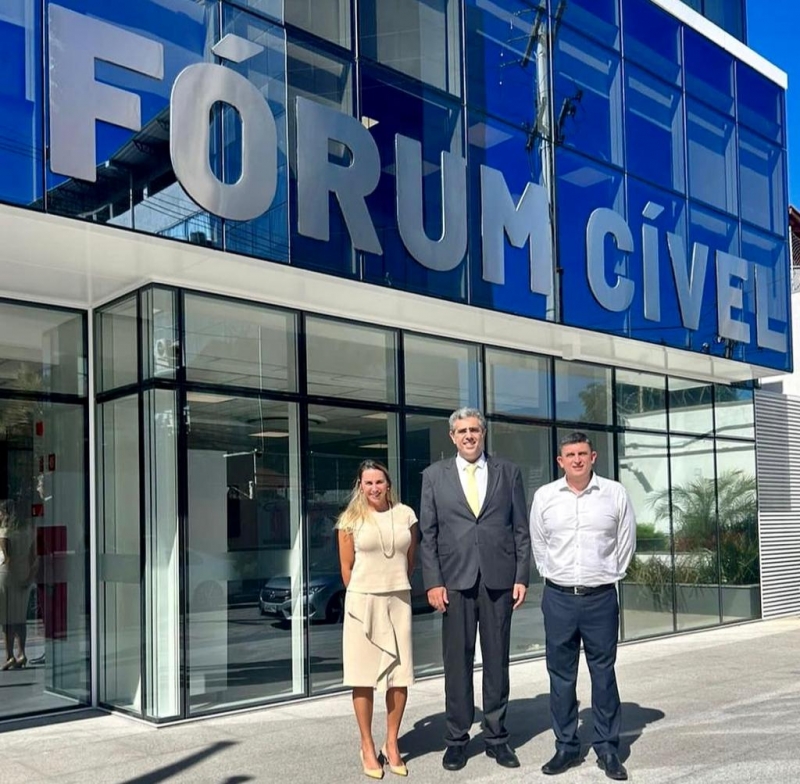 Rizk Filho foi recebido pela Juíza da 1ª Vara Cível de Vitória, Tricia Navarro, e pelo Juiz da 5ª Vara Cível e diretor do Fórum, Rodrigo Cardoso.