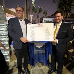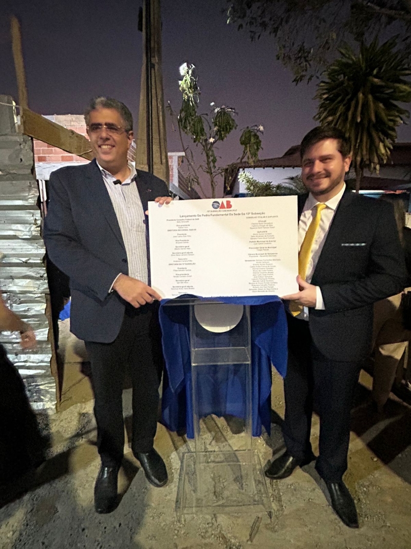 O presidente da OAB-ES, José Carlos Rizk Filho, e o presidente da 13ª Subseção de Aracruz, Filipe Selvati, apresentaram as obras de construção da nova sede da Subseção para a advocacia e sociedade na noite de terça-feira (09/07).