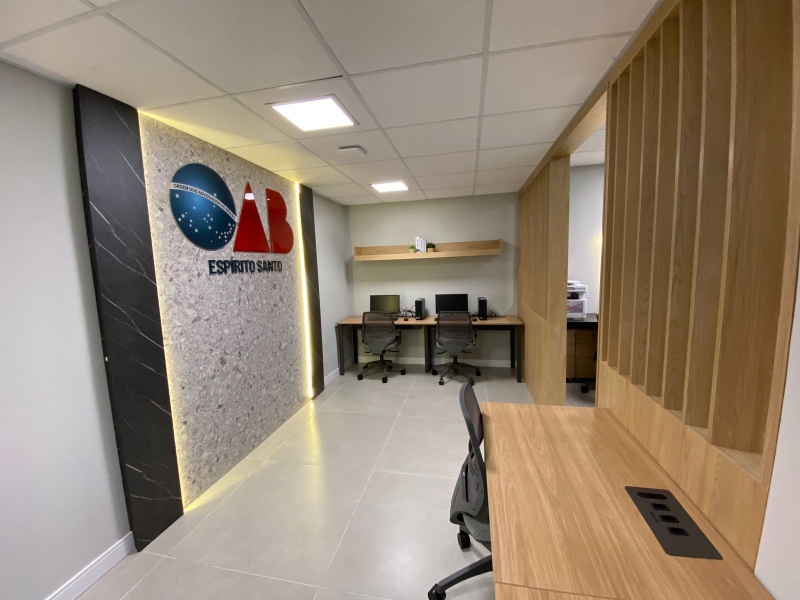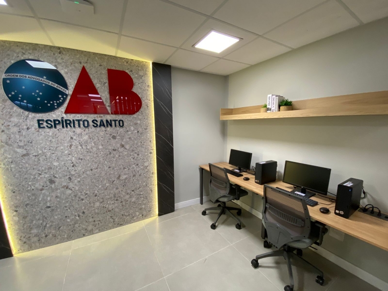 Com um design contemporâneo, a mais nova sala traz conforto e todos os equipamentos necessários para dar mais celeridade aos profissionais do Direito, principalmente a jovem advocacia em início de carreira.