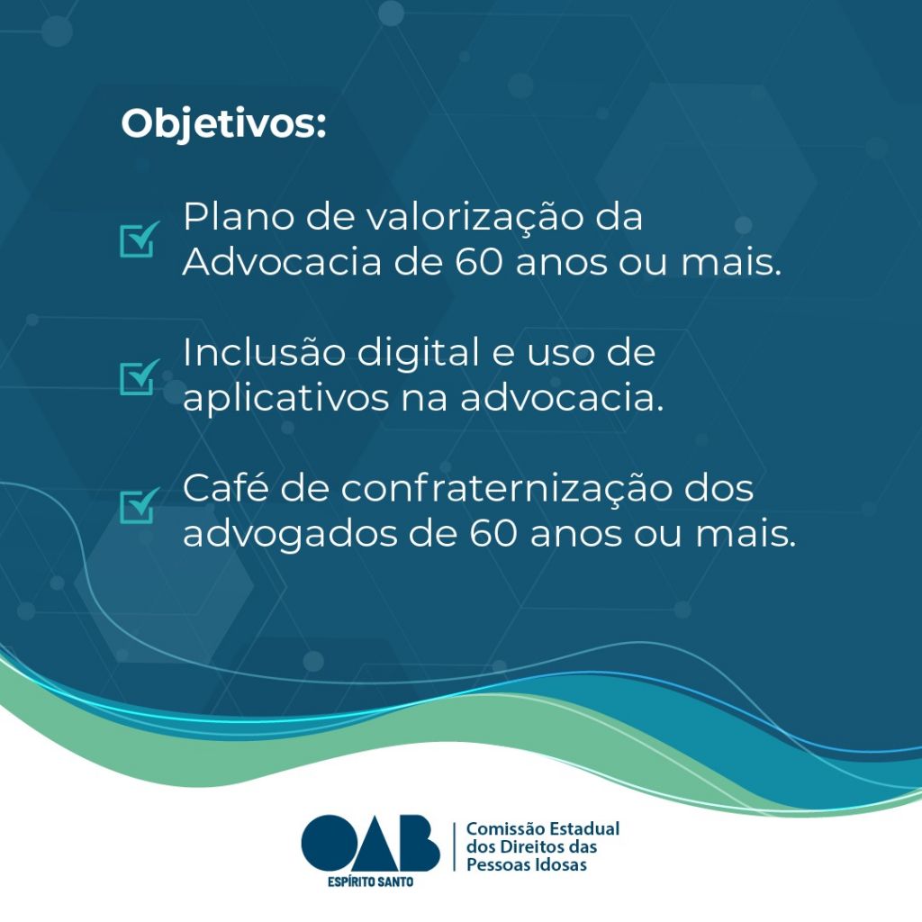 “A Comissão Estadual dos Direitos das Pessoas Idosas da OAB ES presta suas homenagens àqueles que construíram a nossa história. O Plano apresenta diversos aspectos como a criação de Comissões permanentes em todas as Seccionais, o debate sobre o tema nas conferências estaduais e nacionais, parcerias para a inclusão dos profissionais de 60 anos ou mais em instituições de ensino e no mercado de trabalho, inclusão dos idosos no sistema de tecnologia da informação digital e processos eletrônicos, política de concessão de benefícios, aplicação do direito de preferência dos advogados de 60 anos ou mais em todos os atos, nas Varas e Tribunais, entre outros importantes aspectos para a garantia da militância do advogado de 60 anos ou mais”, destacou a presidente da Comissão, Lislie Rodrigues Bayer.