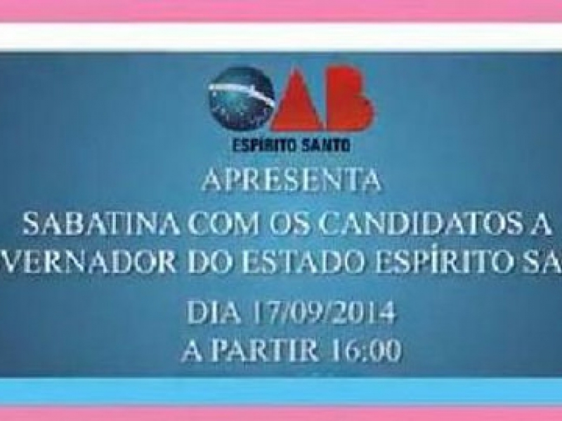 A sabatina que a Ordem dos Advogados do Brasil – Seção do Espírito Santo (OAB-ES) promoverá com os candidatos a governador do Estado nesta quarta-feira (17) poderá ser acompanhada via internet pelo link http://www.dual.art.br/bygomesaovivo/. A sabatina será entre 16 e 19 horas, no Auditório da SEccional.