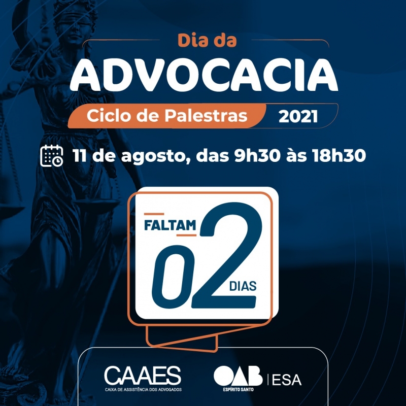 Faltam apenas dois dias para o evento de comemoração pelo Dia do Advogado, nesta quarta-feira (11/08). A ESA-ES promoverá o ciclo de palestras "Um novo tempo para a advocacia: desafios e perspectivas”, com a participação de personalidades que são referências nas diversas áreas do Direito.