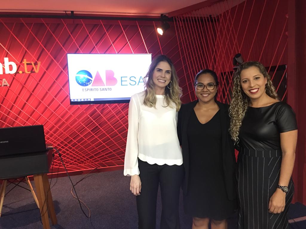 A coordenadora da série Papo de Família, advogada Geovanna Lourenzini, entre as palestrantes Mariana De Nadai e Kamila Barbosa